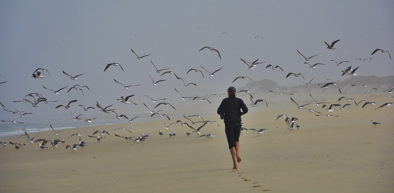 Zuhause, am Praia do Guincho, ist wieder die rote Fahne aufgezogen. Doch auch wenn Schwimmen hier nicht möglich ist, faszinieren die riesigen Brecher und das Laufen am Wassersaum.