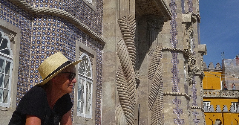Sintra bietet uns gleich zwei Paläste an: In der Innenstadt den Palacio Nacional de Sintra und hoch, sehr hoch auf dem Berg den Palacio Nacional de Pena. Während wir noch zielstrebig auf die Innenstadt zulaufen, hält neben uns ein TukTuk. Für 10 Euro würde er uns auf den Berg hinauffahren. Das Angebot nehmen wir gerne an, es wäre ein sehr mühsamer Weg geworden. Doch als wir oben ankommen erschrecken wir. Es ist so ein großer Besucherstrom hier, dass wir am liebsten gleich wieder umkehren würden. Doch nun sind wir einmal da, und das Schloss sieht auch wirklich märchenhaft aus, ist erst 1840 für Ferdinand von Sachsen-Coburg-Gotha von einem deutschen Architekten, Baron von Eschwege, auf einem alten Kloster aufgebaut worden, hat von vielen Baustilen etwas und ist bunt und hat Erkerchen und Türmchen. Vielleicht ist Hundertwasser hier inspiriert worden, ein wenig erinnert mich der Stilmix an ihn. Doch das Gedränge in den Besuchermassen macht nicht viel Freude. Zurück laufen wir den Berg runter und machen uns anschliessend auf den Weg zum Cabo da Roca. Doch auch hier treffen wir auf einen Riesenbesucherstrom und finden keinen Platz für unsere Mobile. Endlich, kurz vor Cascais, am Praia do Guincho gibt es Platz genug und mehrere Strände und tolle Brandung. Allerdings erlebe ich gleich mit, dass der Lifeguard völlig aufgeregt 2 deutsche Touristen aus dem Wasser pfeift, die die tollen Wellen geniessen. Doch die Warnflaggen weisen Stufe rot aus, die Strömung kann hier sehr tückisch sein.